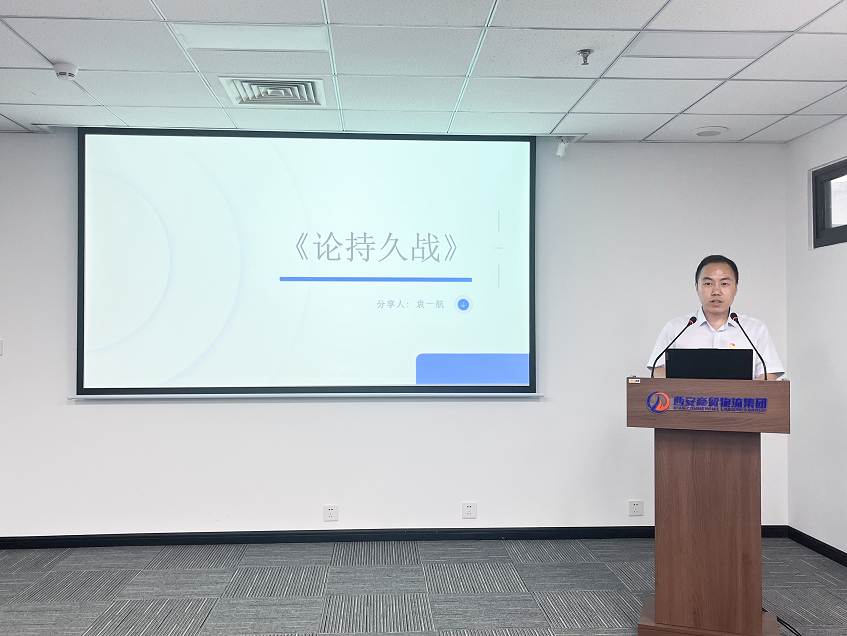 黨群部袁一航則帶來了《論持久戰(zhàn)》的分享:“這本書揭示了抗日戰(zhàn)爭(zhēng)的發(fā)展規(guī)律,啟發(fā)我們將有限的資源集中運(yùn)用,達(dá)成戰(zhàn)略目標(biāo),為市場(chǎng)競(jìng)爭(zhēng)提供借鑒。”