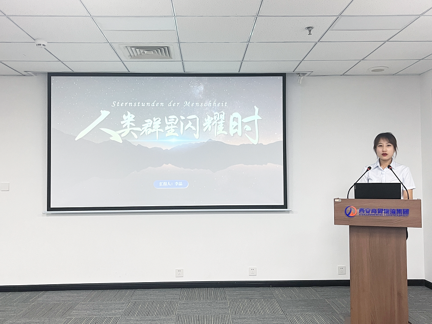 企劃部李晶分享了《人類群星閃耀時(shí)》:“書中以詩(shī)人的筆觸和史學(xué)家的眼光,展現(xiàn)了個(gè)人在歷史洪流中的渺小與偉大,傳遞出‘在困境中不放棄,勇于挑戰(zhàn)自我,挖掘自身潛力’的奮斗精神。”