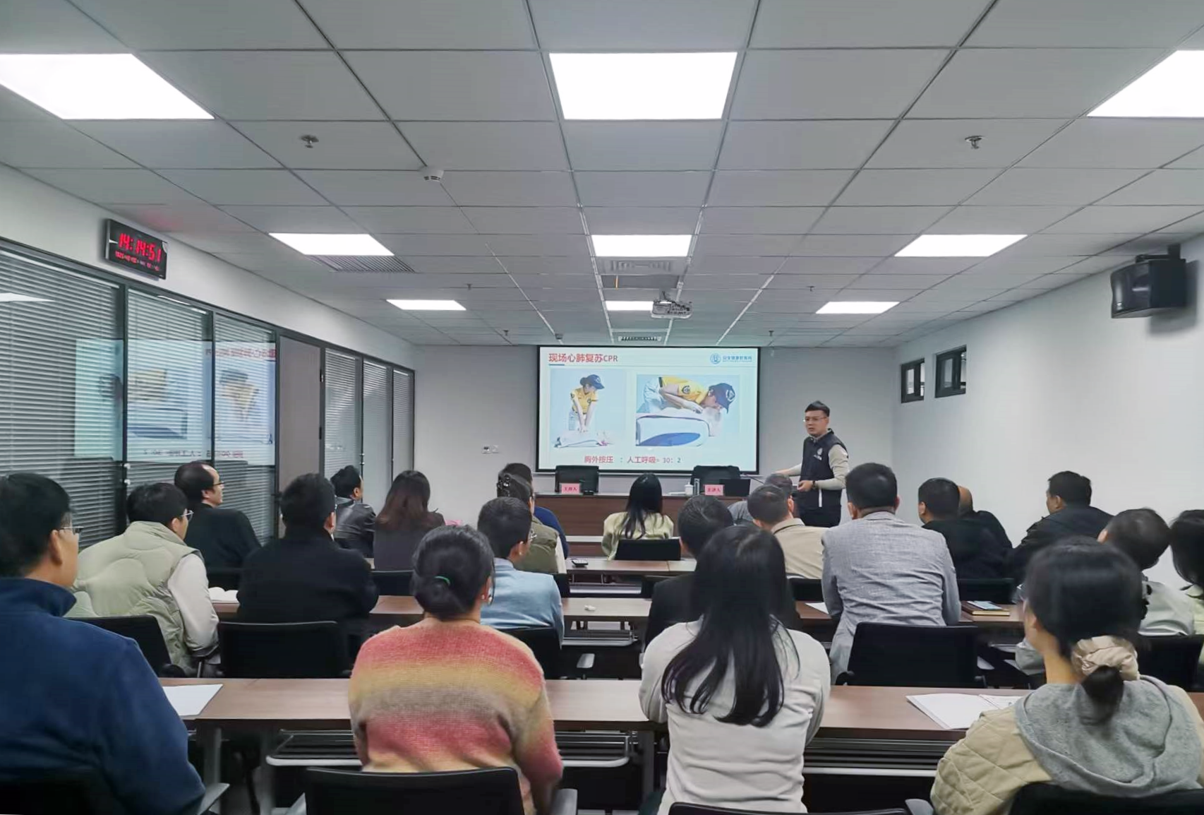 講座邀請(qǐng)到了安全健康教育網(wǎng)陜西站教科主任張肅毅授課。講師結(jié)合真實(shí)案例,從職工實(shí)際需求出發(fā),聚焦應(yīng)急救護(hù)、職業(yè)病防護(hù)、職場(chǎng)心理健康三大核心模塊分層講解。在應(yīng)急救護(hù)方面,細(xì)致拆解心肺復(fù)蘇的操作要點(diǎn),幫助大家真正掌握關(guān)鍵施救技巧;結(jié)合伏案工作特性,量身定制“正確坐姿+定時(shí)拉伸+規(guī)律運(yùn)動(dòng)” 的防護(hù)組合策略;針對(duì)工作生活中易發(fā)的負(fù)面情緒,傳授識(shí)別、疏導(dǎo)實(shí)用技巧,引導(dǎo)大家以積極心態(tài)應(yīng)對(duì)挑戰(zhàn)。